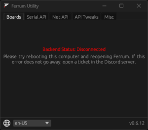 Note: If you get a Backend Status: Disconnected error after installing, try rebooting your pc, and/or reopening the Ferrum app.