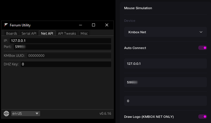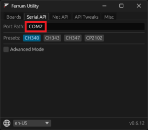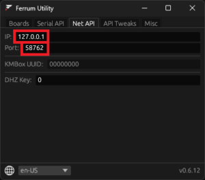 Finally, to connect your provider’s software to Ferrum, simply use the COM Port in the Serial API tab, or the IP address and port in the Net API tab. View the #connecting-software-guide for more information.